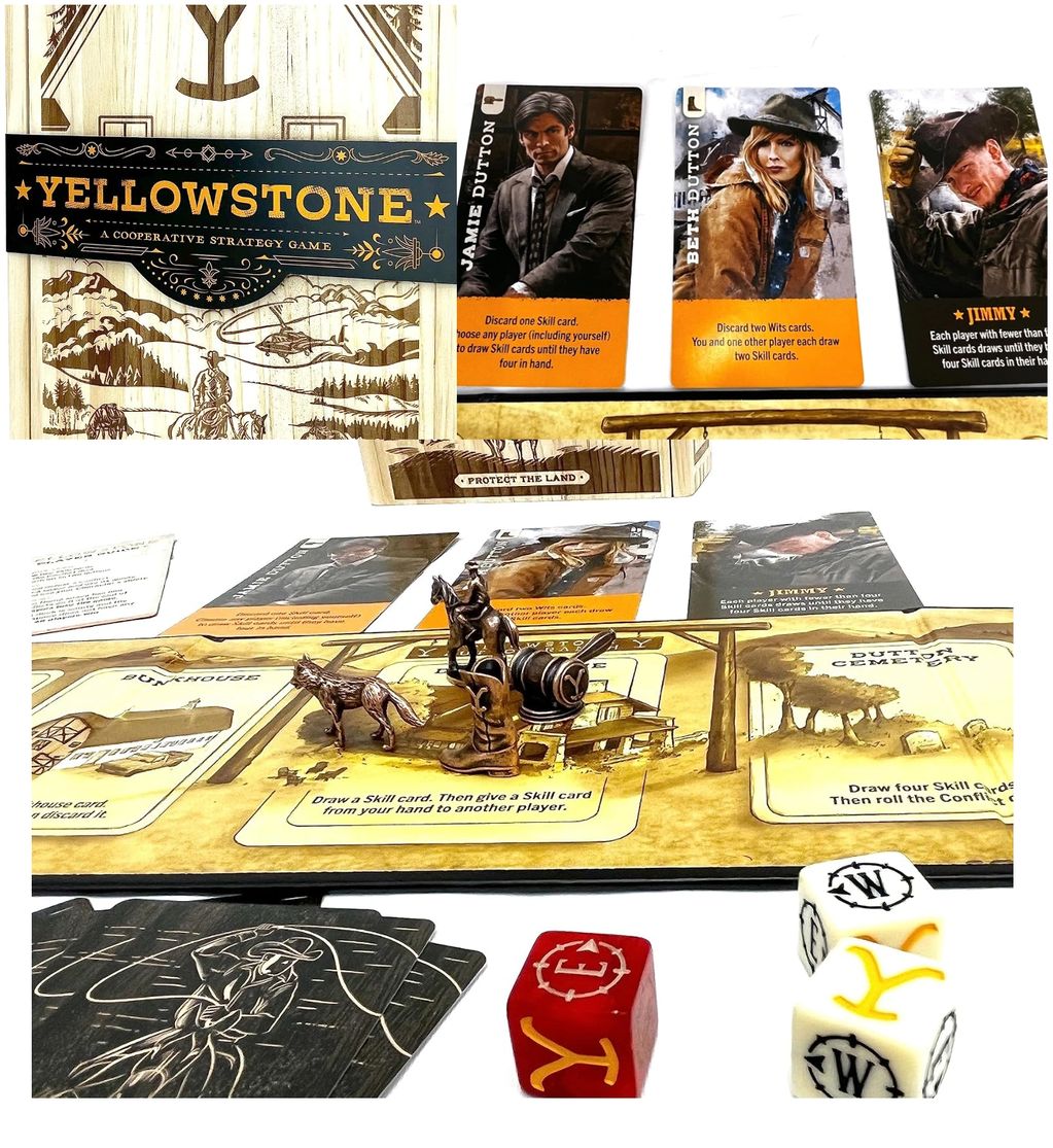 Yellowstone Cooperative Strategy Game: For this in-depth board game, I folded in situations straight from the show, wrote character actions for the spaces and cards, revised the instruction booklet to be narrative-driven, and even concepted abstract play pieces to represent main characters.